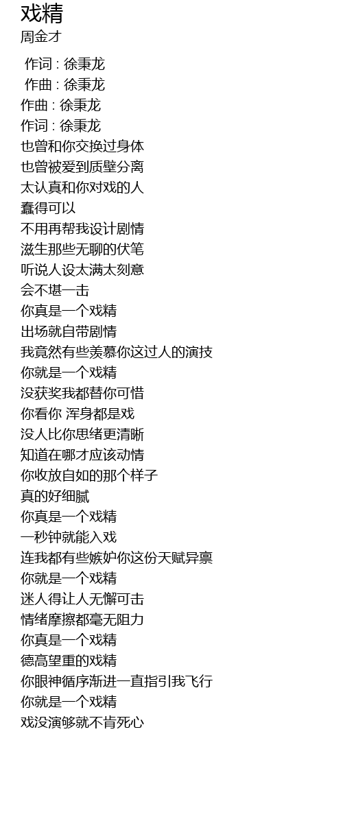 | [00:54.938] | 你真是一个戏精 |