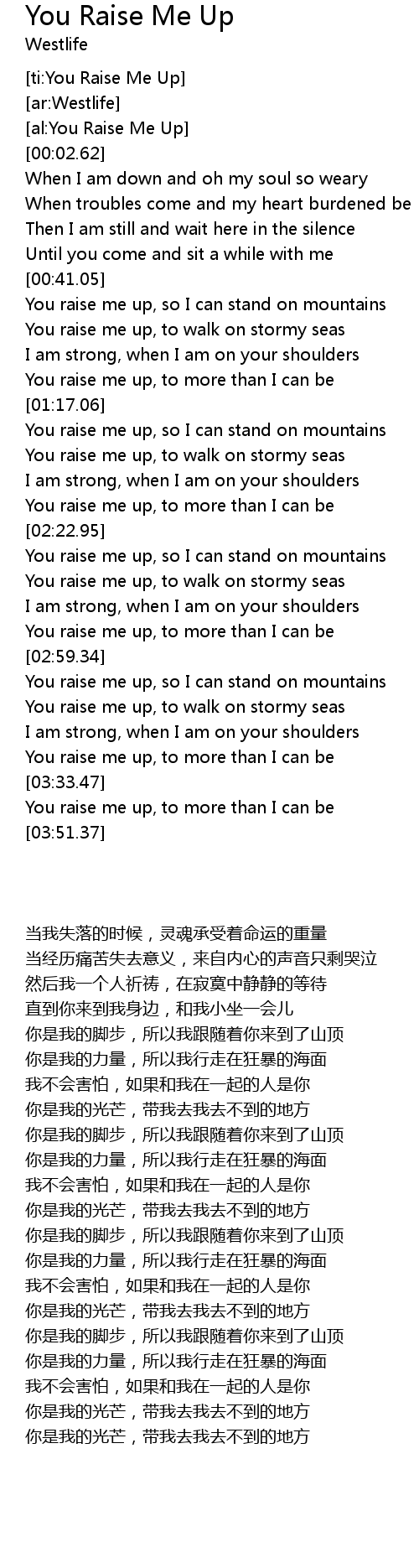 [ti:You Raise Me Up] |