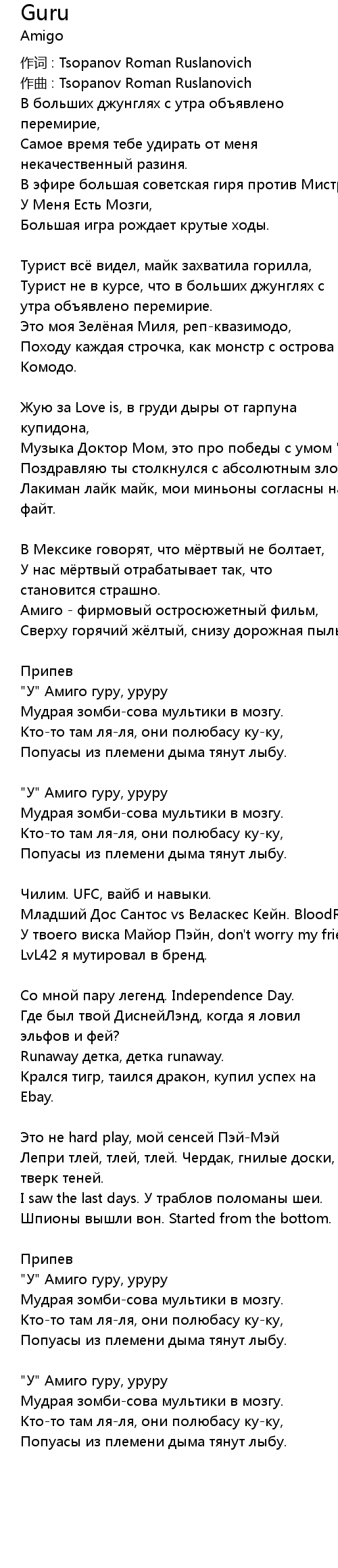 "У" Амиго гуру, уруру |