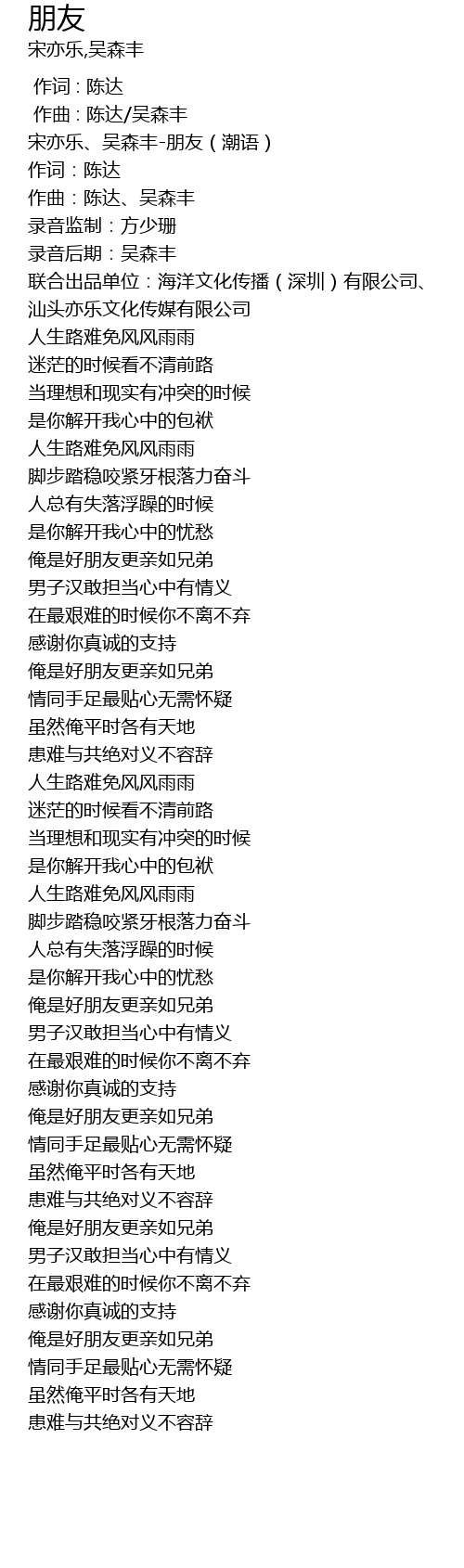 | [00:00.475] | 宋亦乐、吴森丰-朋友(潮语) |