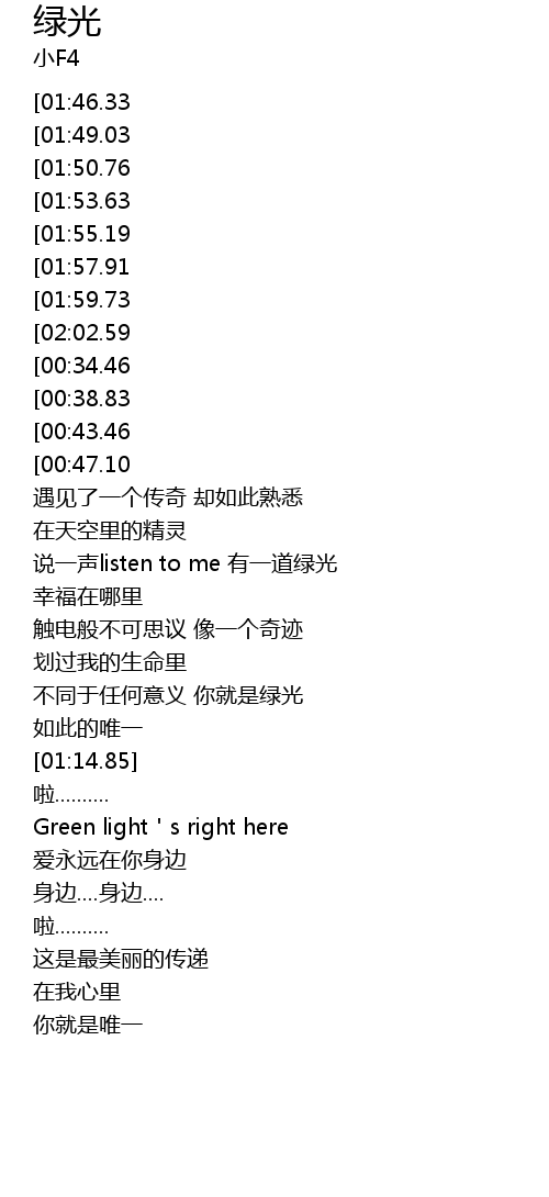 | [01:28.93][00:34.46] | Green Light I m searching for you |