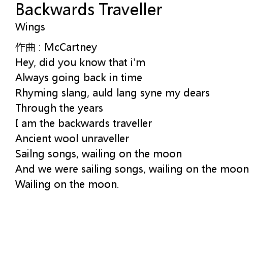 | 歌曲 | Backwards Traveller |