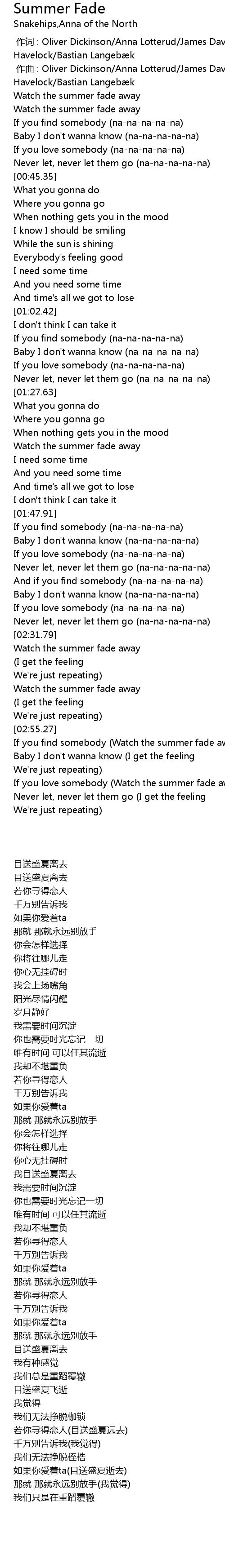 | [02:55.47] | If you find somebody Watch the summer fade away |