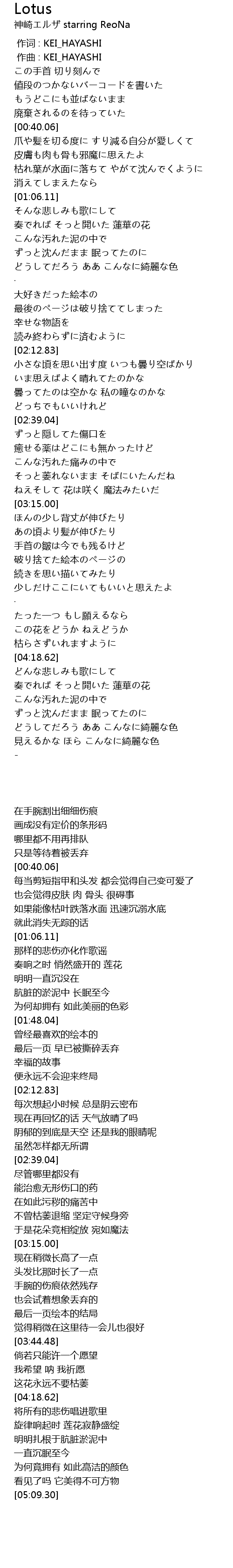 | [04:27.61] | 奏でれば そっと開いた 蓮華の花 |