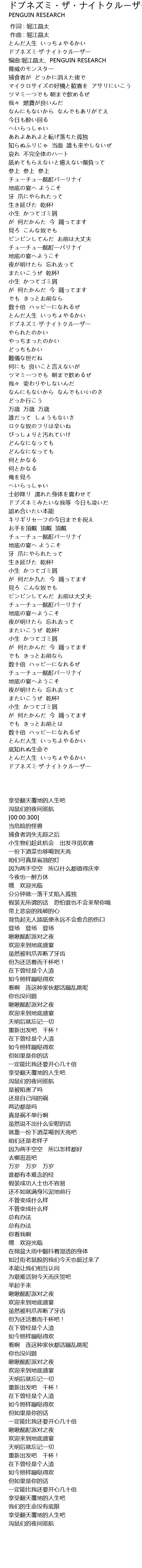 | [00:03.220] | ドブネズミ·ザ·ナイトクル一ザ一 |
