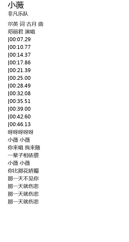 小薇 歌词