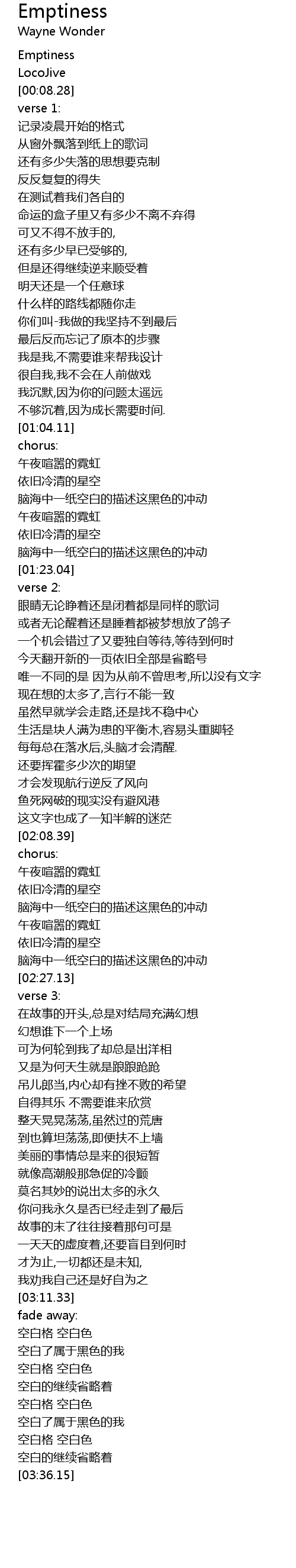 | [02:26.35] | 脑海中一纸空白的描述这黑色的冲动 |