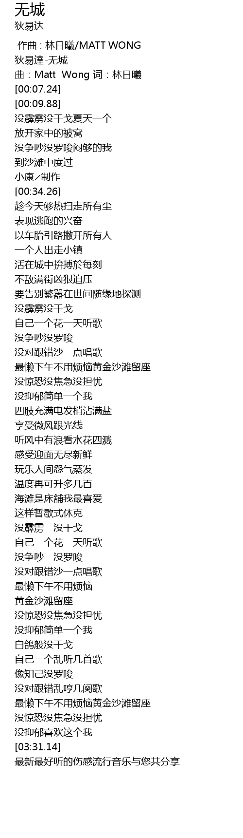 | [00:03.38] | qu: Matt Wong ci: lin ri xi |
