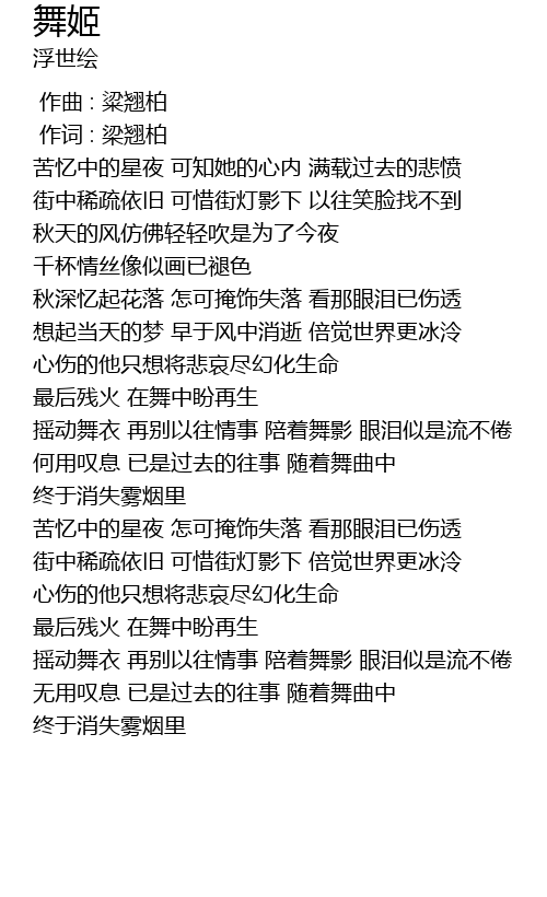 | [01:36.00] | 何用叹息 已是过去的往事 随着舞曲中 终于消失雾烟里 |