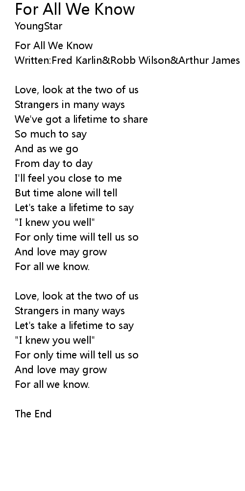 For All We Know |