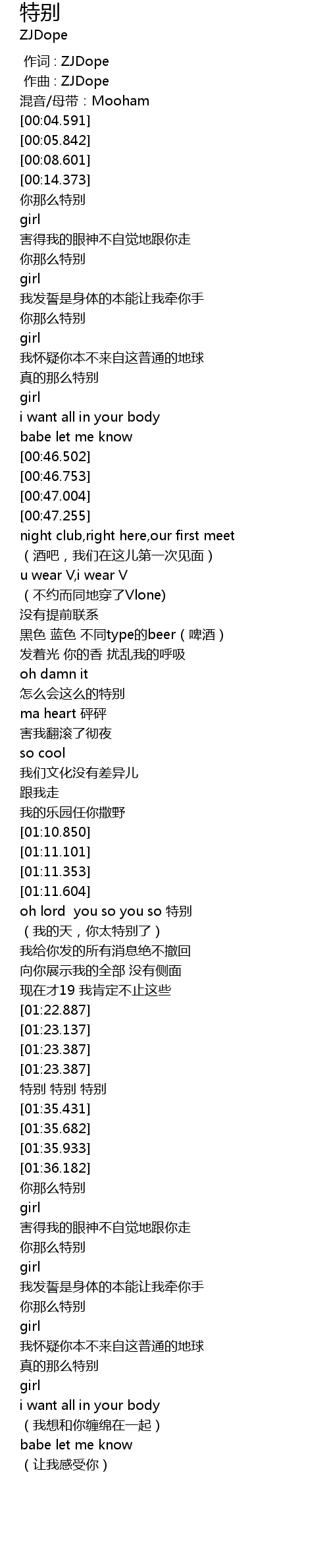 | [01:52.497] | 真的那么特别 |