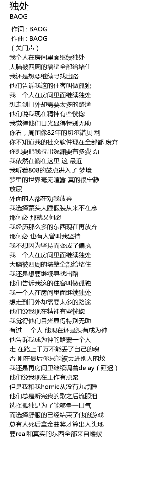 | [00:00.000] | 作词 : BAOG |