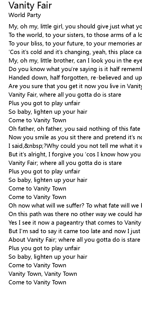 'Cos it's cold and it's changing, yeah, this place called Vanity Fair |
