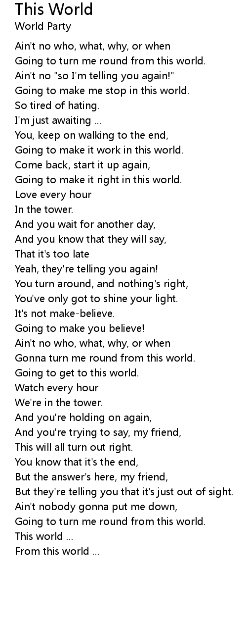 Gonna turn me round from this world. |