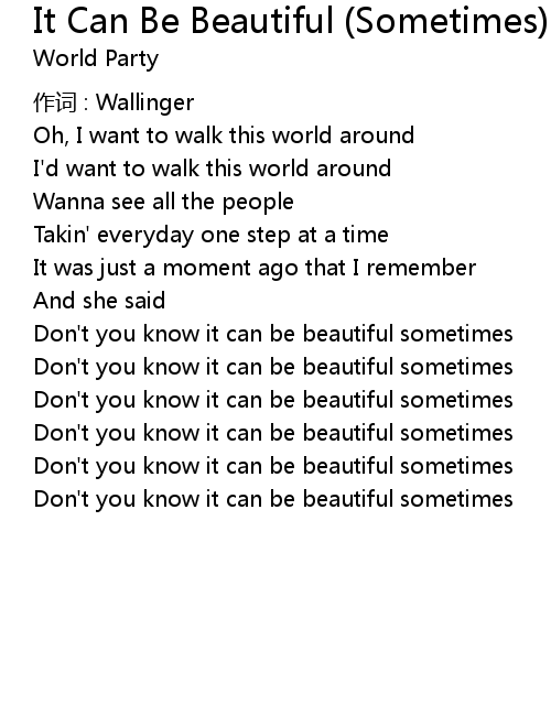 | 歌曲 | It Can Be Beautiful (Sometimes) |