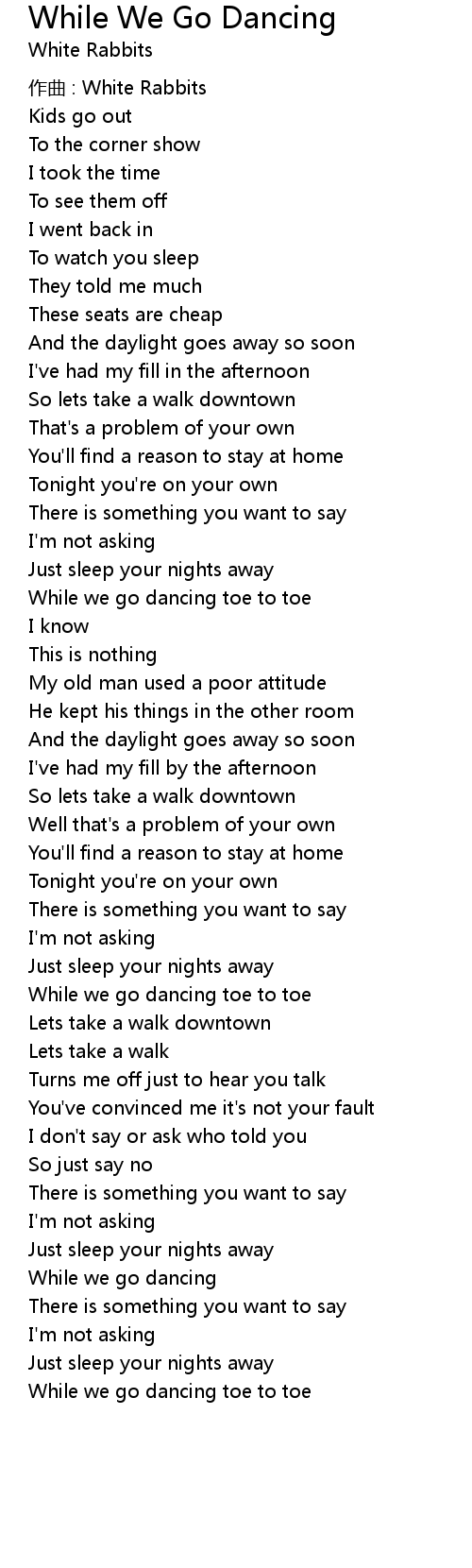 | 歌曲 | While We Go Dancing |