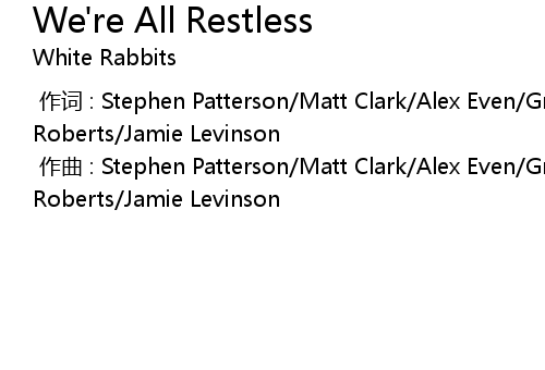 | [00:00.000] | 作曲 : Stephen Patterson/Matt Clark/Alex Even/Gregory Roberts/Jamie Levinson |