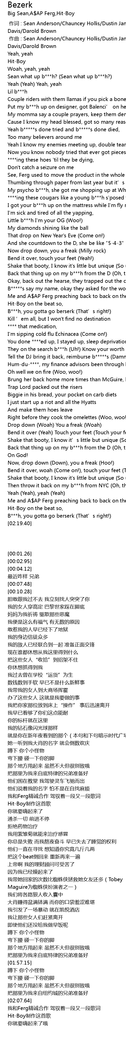 | [02:16.91] | B***h, you gotta go berserk (That’s right!) |