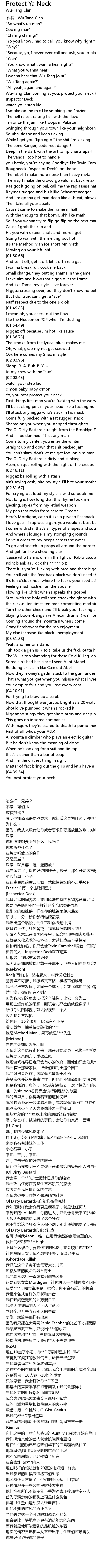 | [00:22.42] | Wu-Tang Clan coming at you, protect your neck kid, so set it off the Inspector Deck |