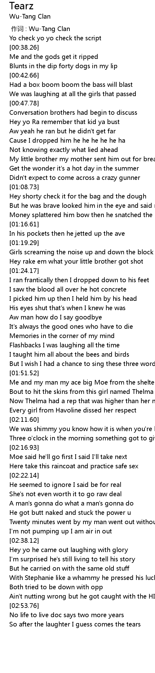 | [00:00.00] | 作词 : Wu-Tang Clan |