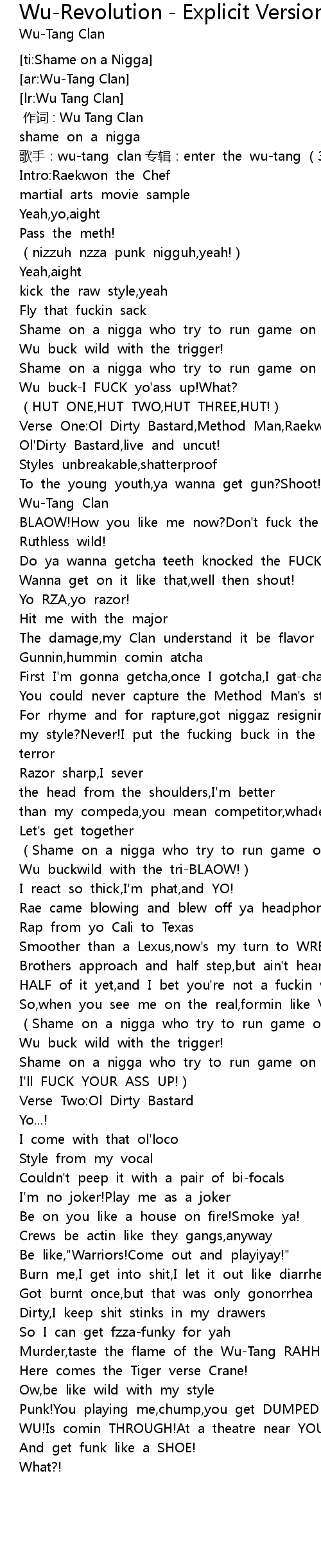 | [00:00.00] | 作词 : Wu Tang Clan |