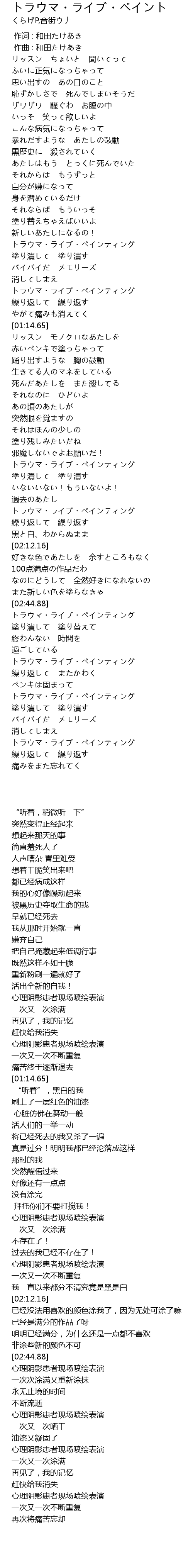 | [02:03.78] | トラウマ・ライブ・ペインティング |