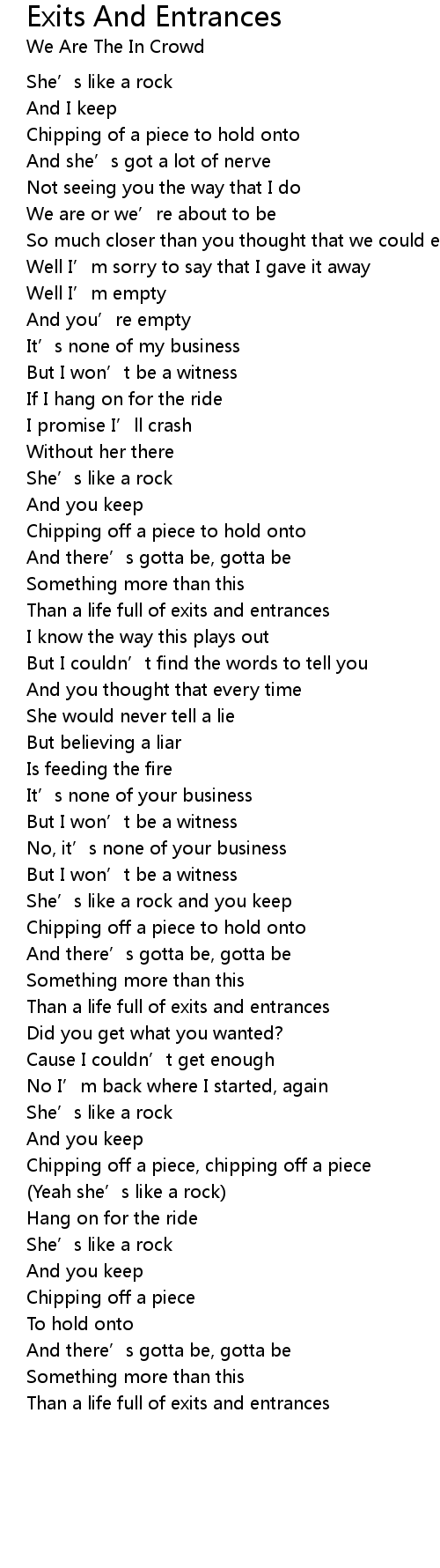 | 歌曲 | Exits And Entrances |