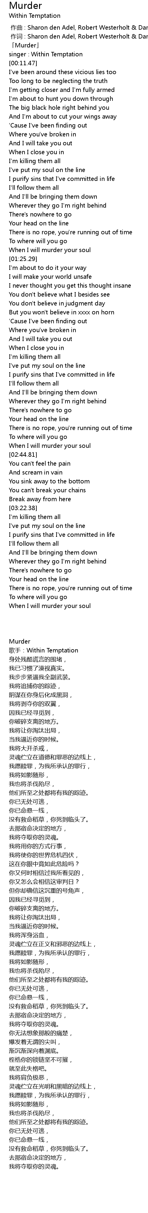 | [00:01.00] | zuo ci : Sharon den Adel, Robert Westerholt Daniel Gibson |