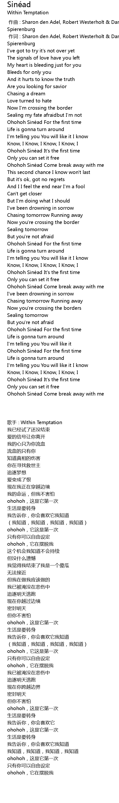 | [01:05.490] | Ohohoh Sinéad For the first time |