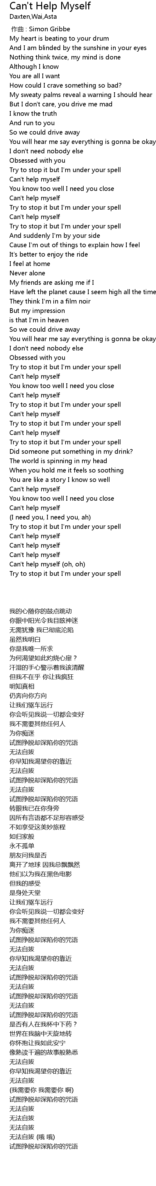 | [02:20.00] | Can' t help myself |