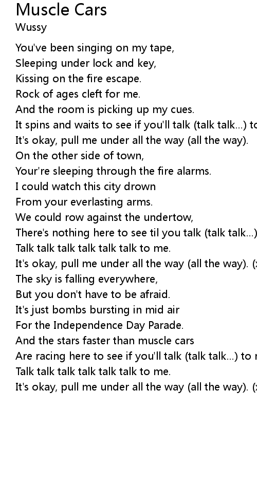 | Talk talk talk talk talk talk to me. | |