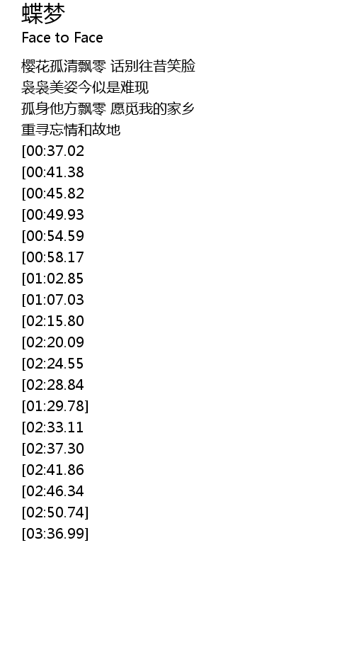 | [03:01.30][02:15.80][01:12.54] | 蝶飞去 思绪风中随 |