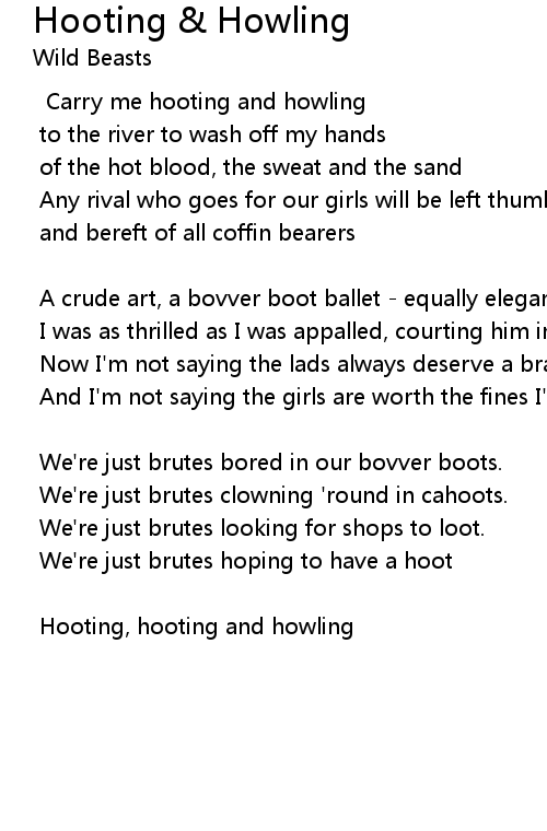 Carry me hooting and howling |