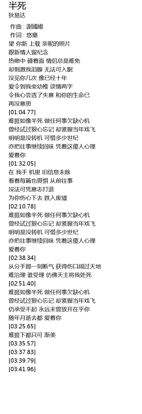 | [02:54.41] | 难捱如像半死 做任何事欠缺心机 |