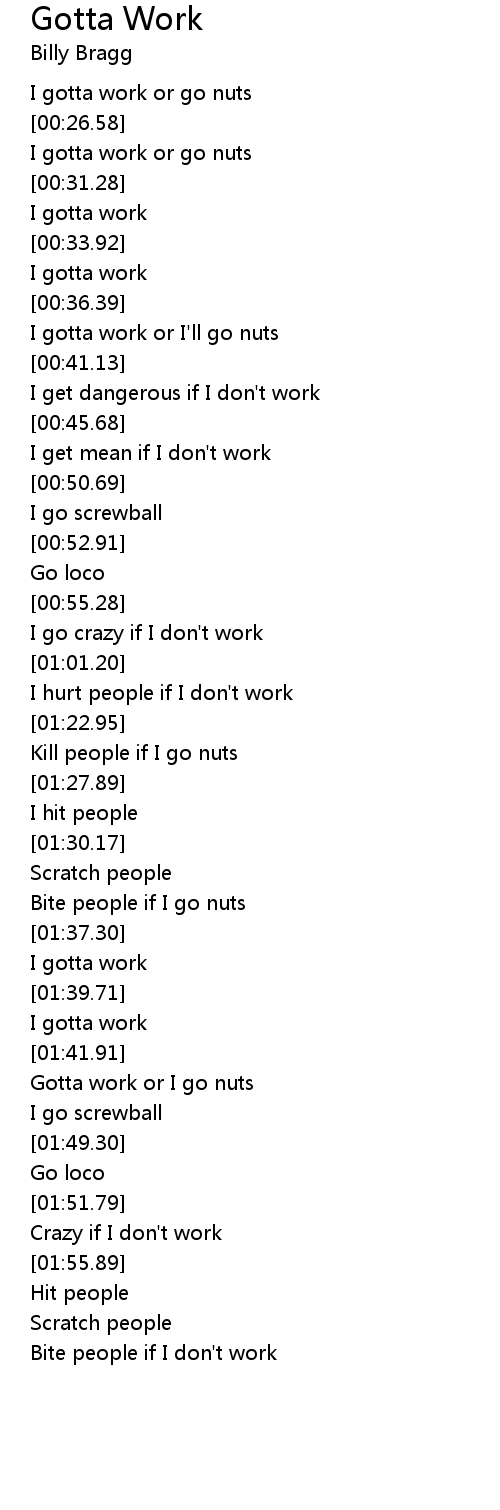 I gotta work or go nuts |