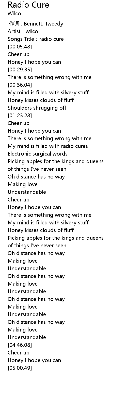 | [00:00.00] | 作词 : Bennett, Tweedy |