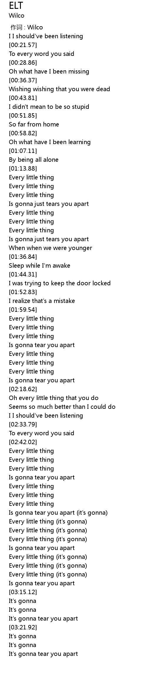 | [02:57.02] | Is gonna tear you apart (it's gonna) |