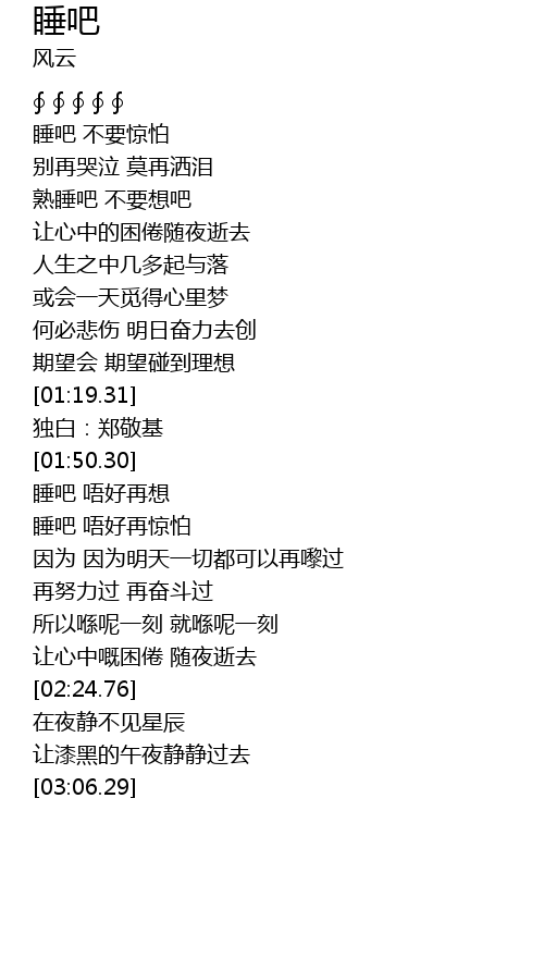 | [01:58.14] | 睡吧 唔好再惊怕 |