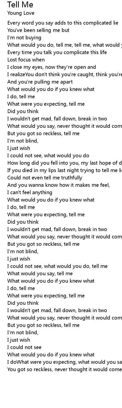 What would you do, tell me, tell me, what would you do |