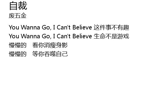 | You Wanna Go, I Can' t Believe shēng mìng bú shì yóu xì | |