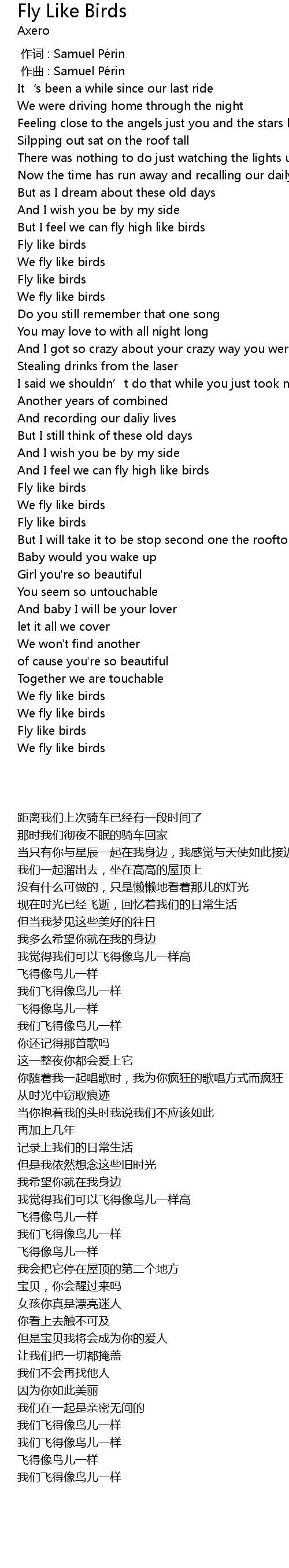 | [03:00.83] | 我们飞得像鸟儿一样 |
