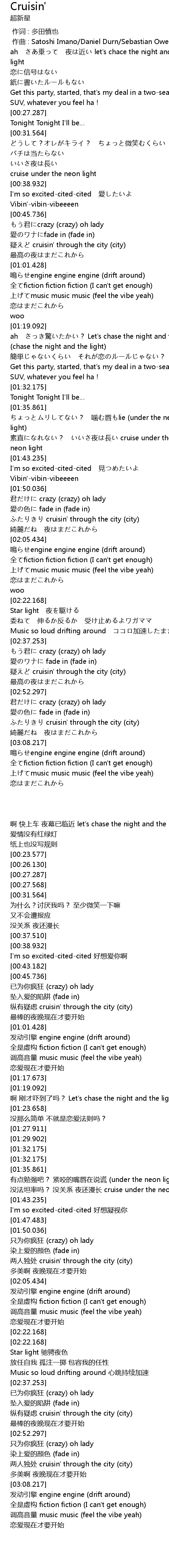 | [02:59.675] | ふたりきり cruisin' through the city (city) |