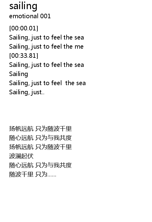 | [00:47.64] | Sailing, just to feel the sea |