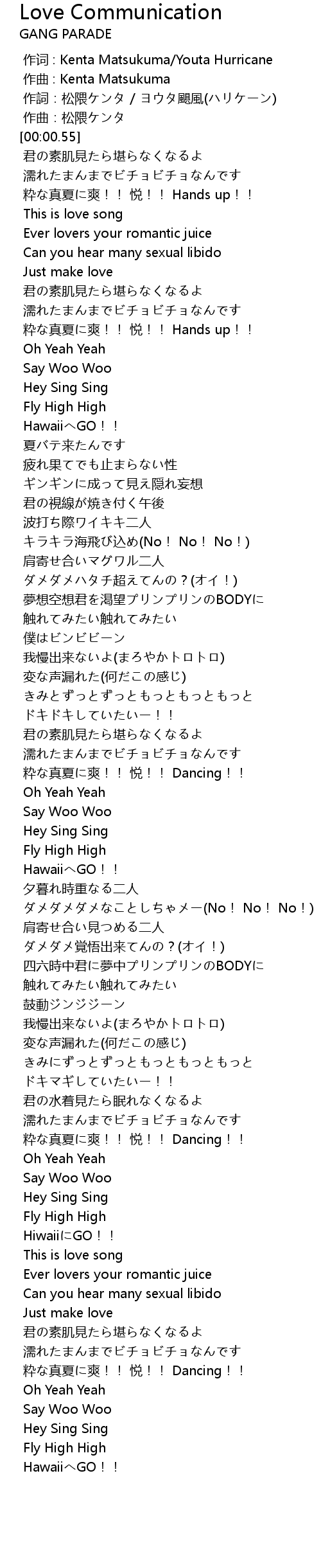 | [02:33.91] | 四六時中君に夢中プリンプリンのBODYに |