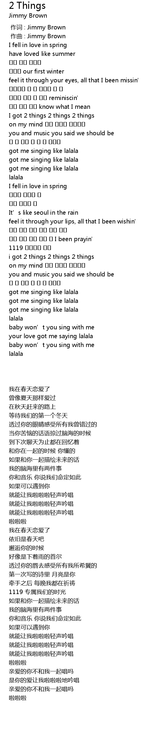 | [01:00.321] | I got 2 things 2 things 2 things |