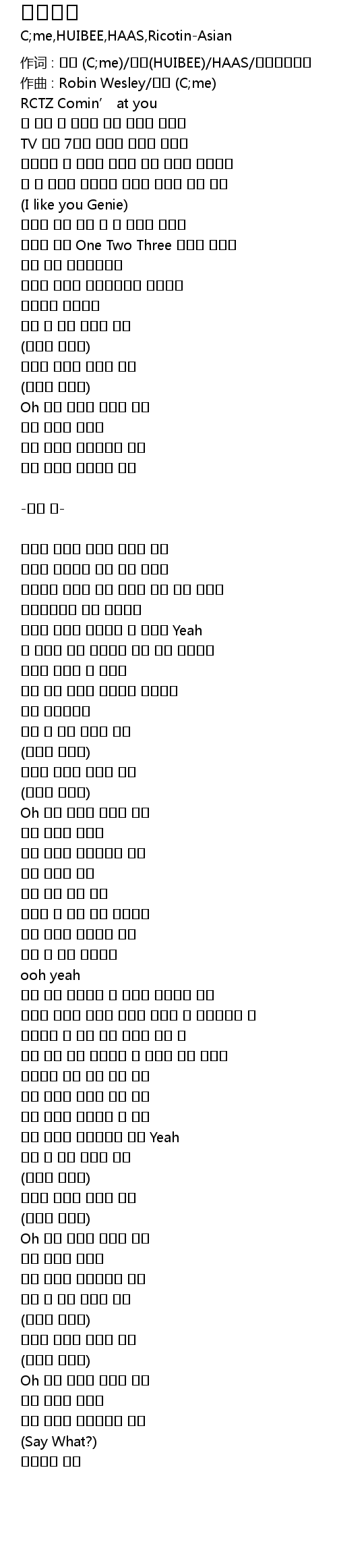 作词 : 씨미 (C;me)/희비(HUIBEE)/HAAS/리코틴에이션 |