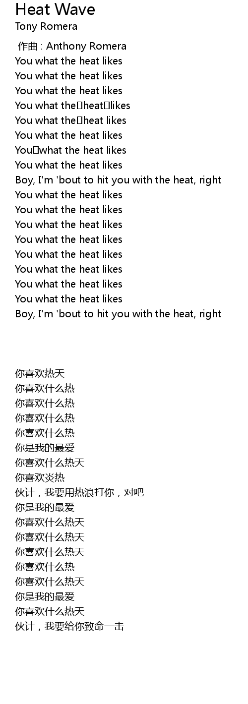 | [03:00.102] | Boy, I'm 'bout to hit you with the heat, right |