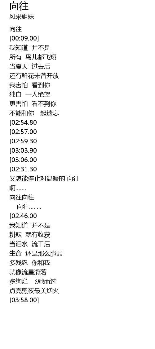 | [02:36.50] | xiàng wǎng xiàng wǎng |