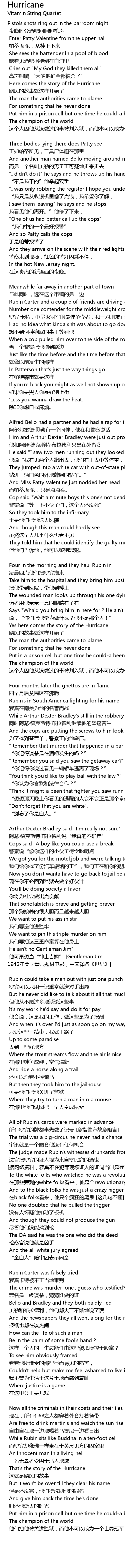 | Here comes the story of the Hurricane | |