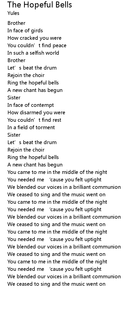 | [03:45.30] | We blended our voices in a brilliant communion |